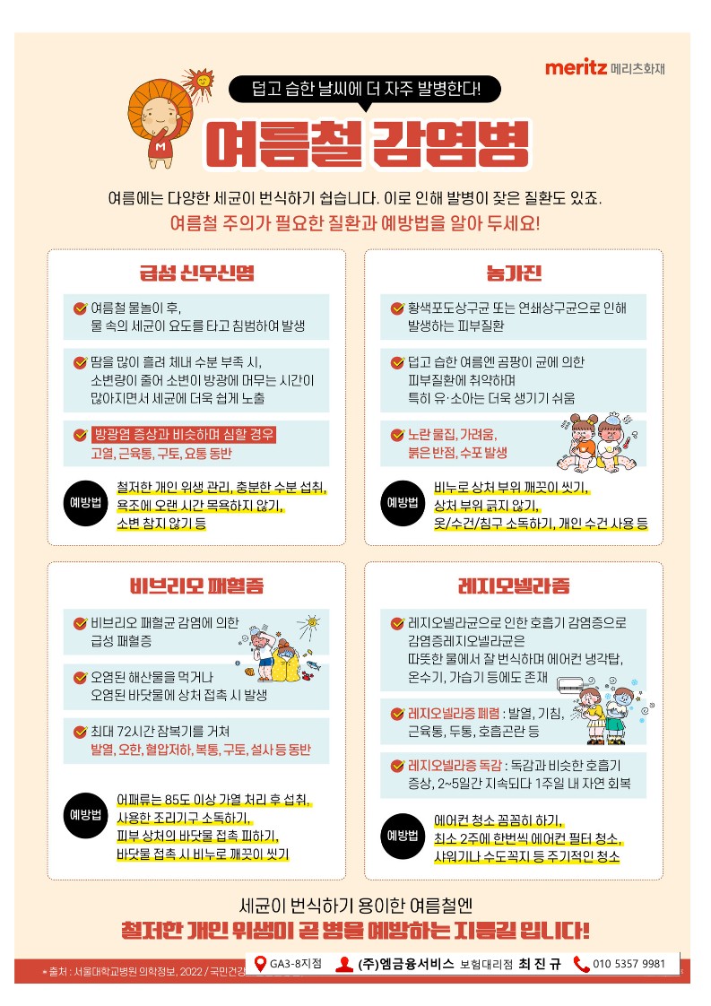 덥고 습한 날씨에 더 자주 발병한다! 여름철 감염병 페이지 정보 작성자 관리자 댓글 0건 조회 289회 작성일 22-07-15 16:44 본문 덥고 습한 날씨에 더 자주 발병한다! 여름철 감염병 목록 목록 이전글"카페인 중독"을 의심하세요! 22.08.08 다음글건강관리에 필수! 유산균의 종류는 무엇이 있을까? 22.04.20
