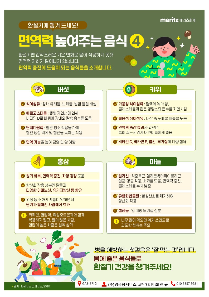 환절기에 챙겨 드세요! 면역력 높여주는음식 페이지 정보 작성자 관리자 댓글 0건 조회 340회 작성일 22-10-13 18:44 본문 환절기에 챙겨 드세요! 면역력 높여주는음식 목록 목록 이전글뱃속 시한폭탄"복부 대동맥류"암.치매 위험도 높인다 22.11.04 다음글2022년 하반기 달라지는 주요 제도 모음 22.08.24