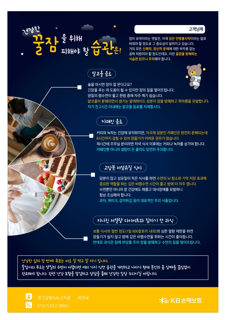 건강한 꿀잠을 위해 피해야 할 습관은? 페이지 정보 작성자 관리자 댓글 0건 조회 270회 작성일 25-02-21 11:20 본문 건강한 꿀잠을 위해 피해야 할 습관은? 목록 목록 이전글고기와 각종 가공식품이 "치매위험" 25.04.02 다음글만병의 근원"만성염증"이 걱정되시나요? 건강한 긱단으로 챙기세요! 25.01.17