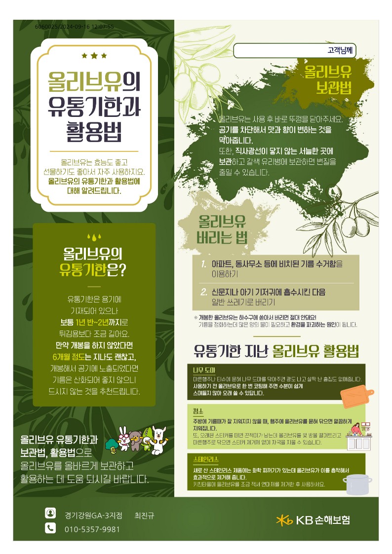 올리브유의 유통기한 과 활용법 페이지 정보 작성자 관리자 댓글 0건 조회 322회 작성일 24-09-16 12:23 본문 올리브유의 유통기한 과 활용법 목록 목록 이전글전세보증금 떼일까?걱정된다면 이 보험에 주목하자! 24.10.31 다음글집 보러 다닐때,이것만큼은 꼭 체크하세요! 24.09.12